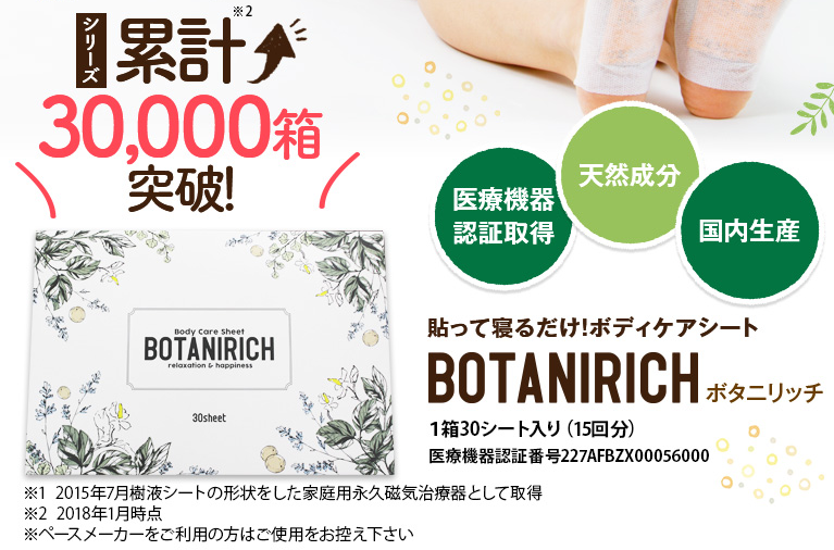 ボタニリッチは、他の足裏シートとは異なり「医療機器認証」を受けている日本初の足裏用樹液シートなんです!