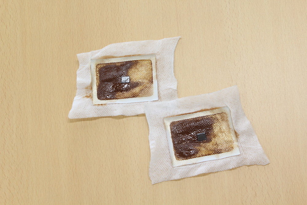 足の裏に貼ったシートが排出した水分を吸着。翌朝シートを剥がすと汗とシートが反応してドロドロに変化するので、目で見て汗をかいたことを実感できますよ。